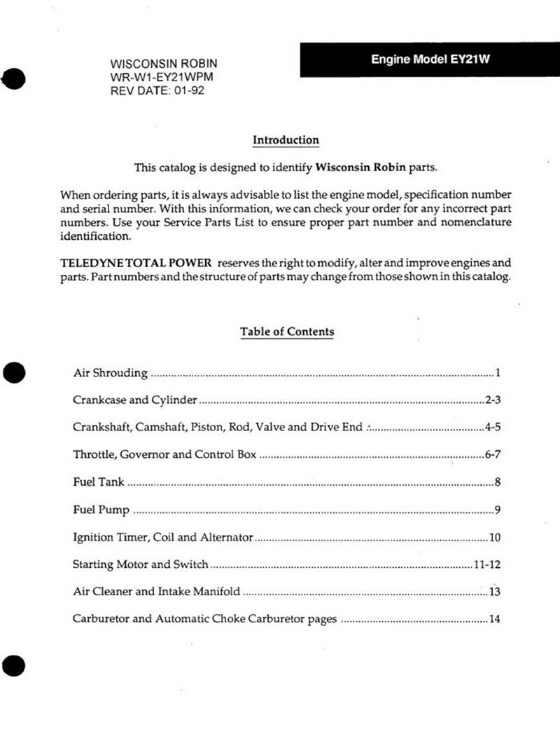 Subaru-Robin 10 Parts Manual See Image for Models Covered