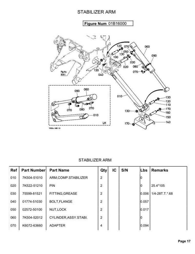 Kubota BH65 backhoe parts Manual