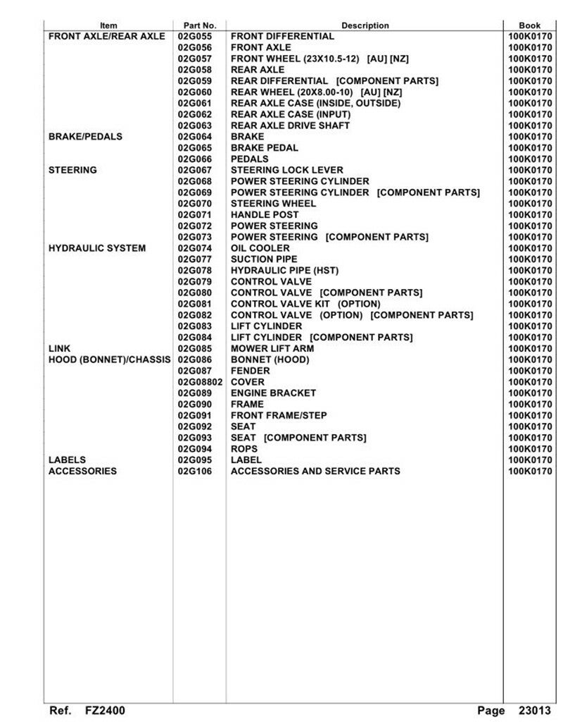 Kubota-FZ2400 FZ21 RC60 RC72 Front Mower Parts Manual