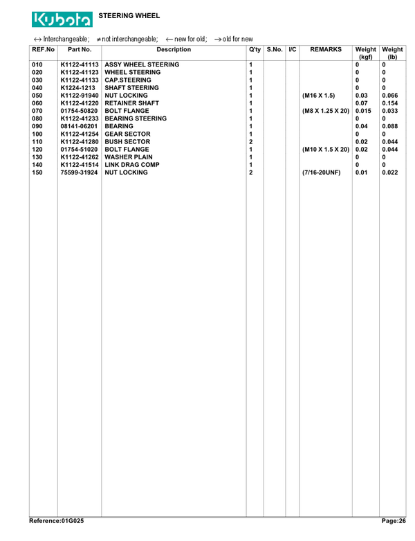 Kubota-Garden Tractor T1560 Parts Manual