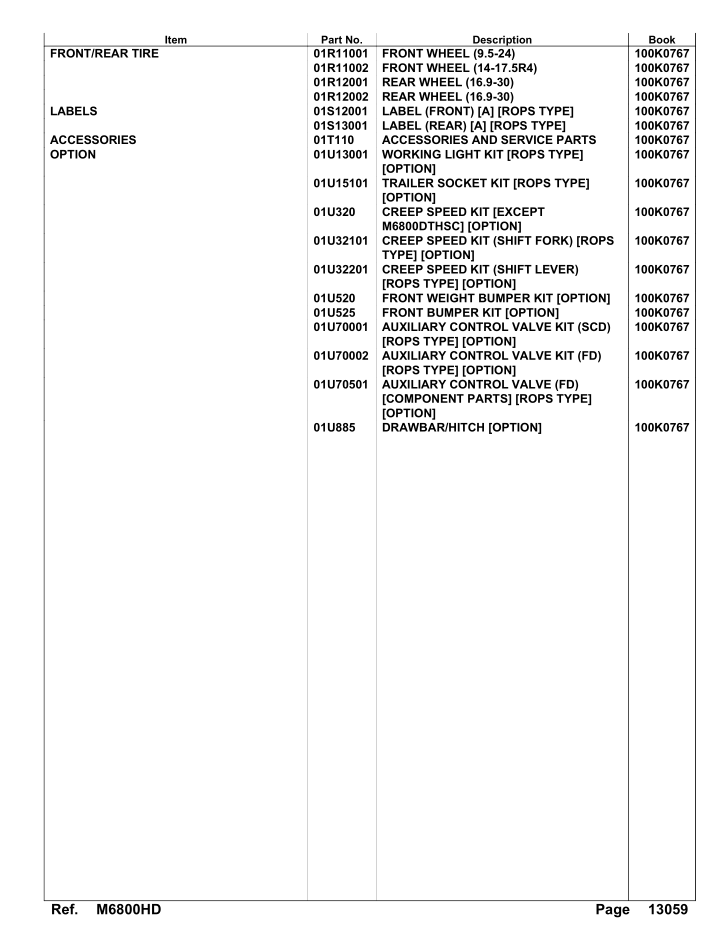 Kubota M6800HD Parts Manual