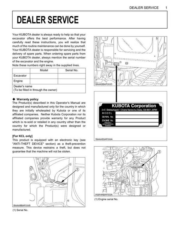 Kubota Excavator KX080 series Operators Manual