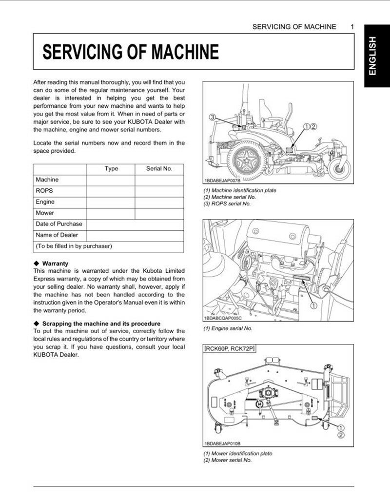 Kubota Mowers ZG200 ZG300 series Operators Manual