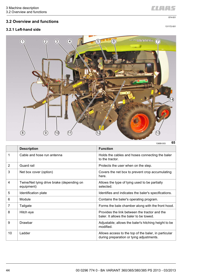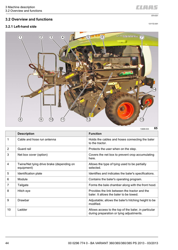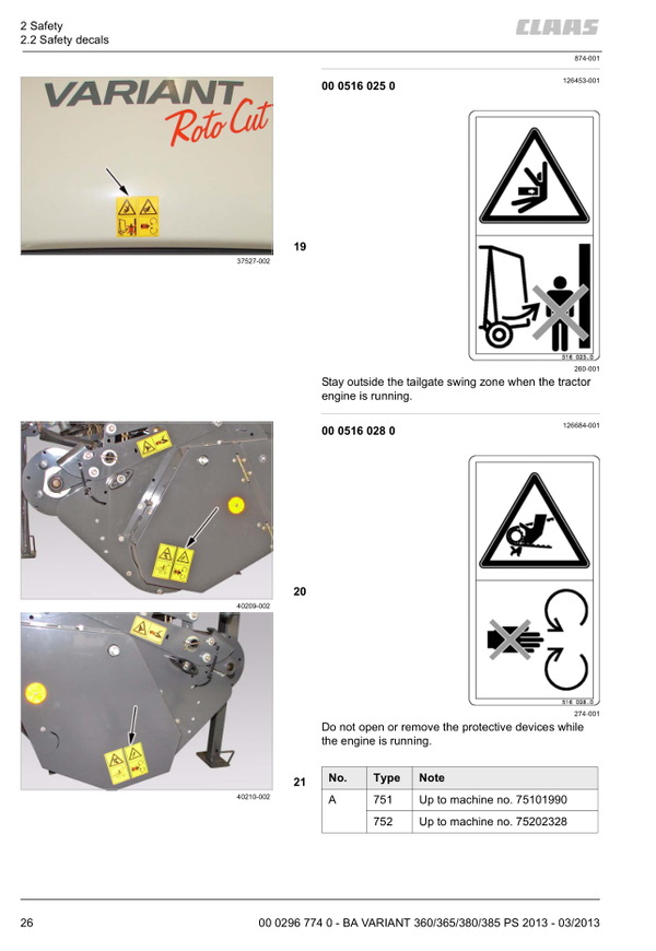 B2 Claas Variant 360 to 380 Rotocut Operators Service Manual