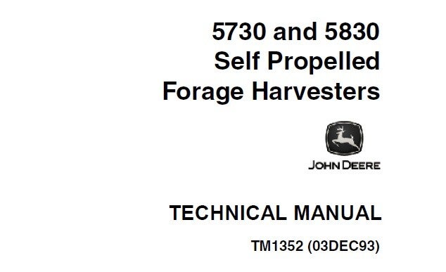 This Technical Manual offers all the service and repair information for John Deere 5730, 5830 Self Propelled Forage Harvesters.