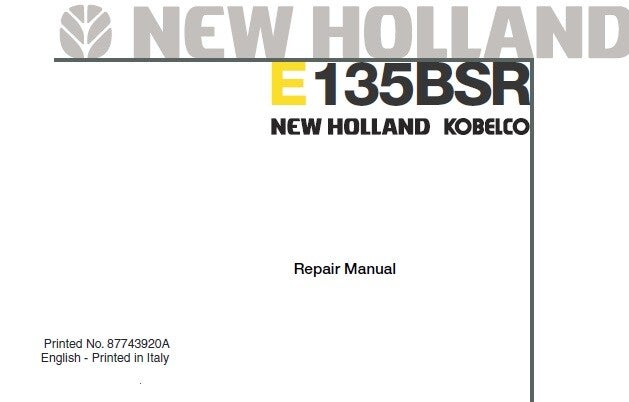 New Holland E135BSR Hydraulic Excavator Service Repair Workshop Manual