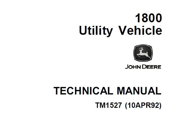 This Technical Manual offers all the service and repair information for John Deere 1800 Utility Vehicle.