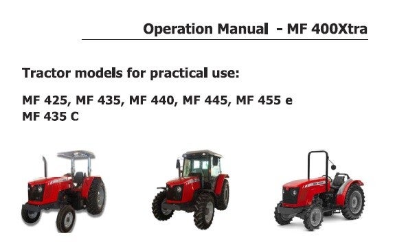 MFO Massey Ferguson MF425, MF435, MF435C, MF440, MF445, MF455e Tractors Operation and Maintenance Manual